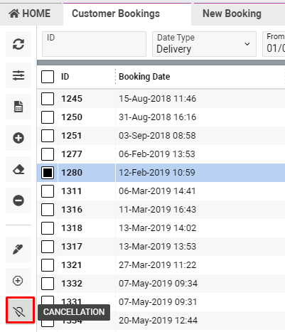 The “CANCELLATION” button allows changing the status of booking to the “CANCELLED”