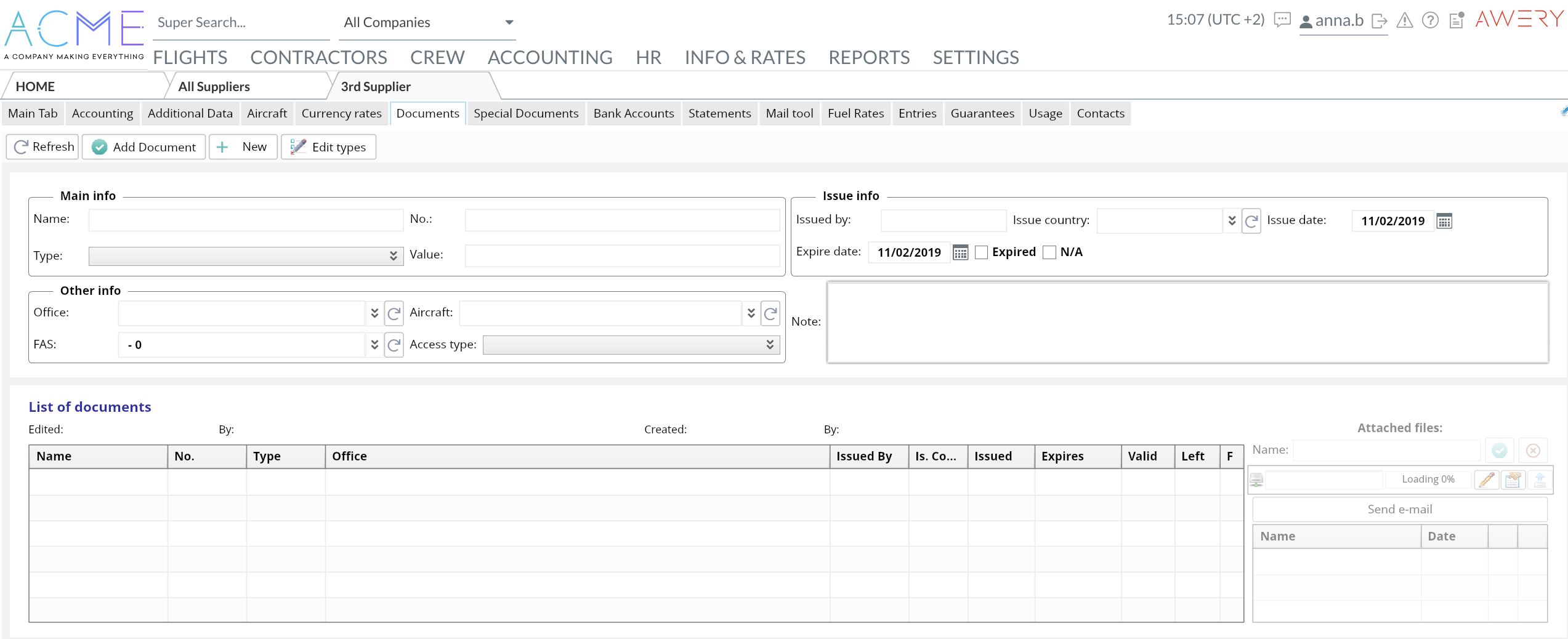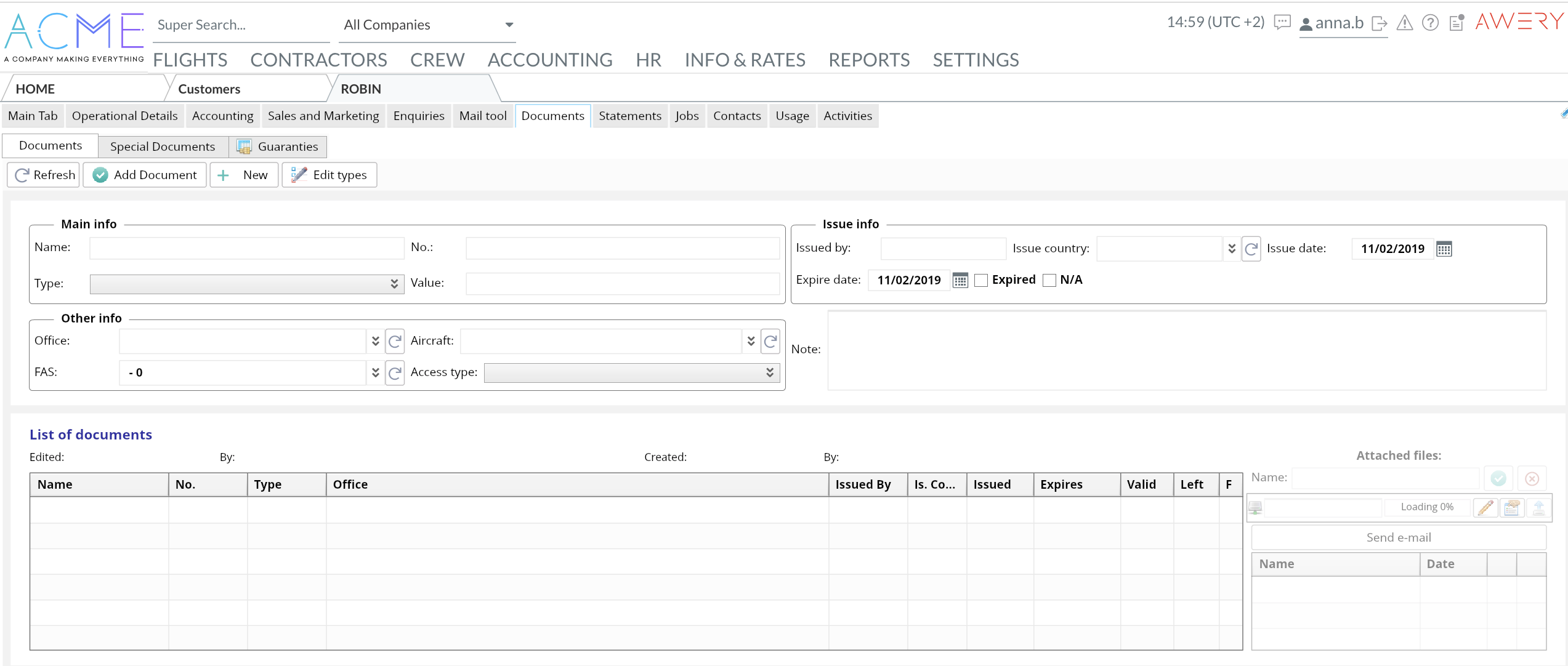 The created types are used when uploading the required documents for a client or supplier's data, that allows to keep all the papers attached to the specific person and email them directly from AWERY system.