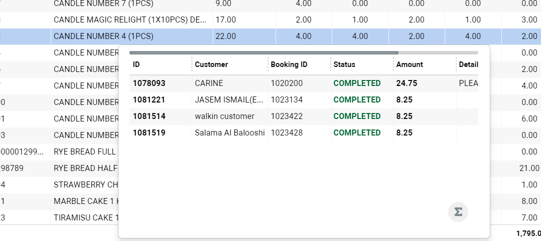 To open call-out window, click on the number in the column to see a list of orders that are tied to a specific day and a specific product.