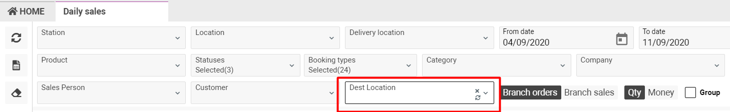 - Branch orders - using the Branch orders button will be available Dest locations selector and a list of records of the orders department