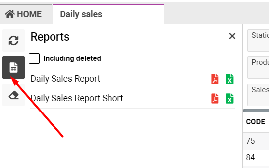 Press on the Reports button and make the report which you need. Available two reports (Daily Sales Report and Daily Sales Report Short) in two formats (PDF and Excel).