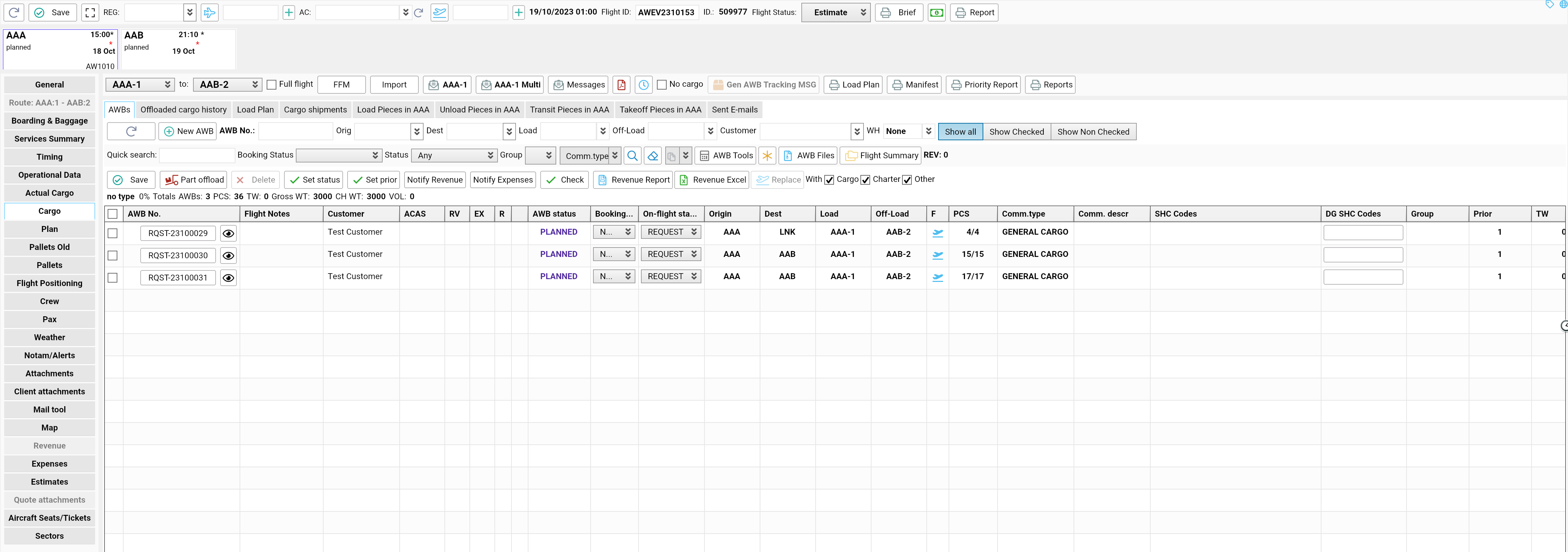 - Map AWB Revenue\expenses types and Flight Services Revenue\Expenses types.