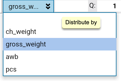- Select one of the options indicating that the cost of the flight will be distributed across all AWBs in the flight.
