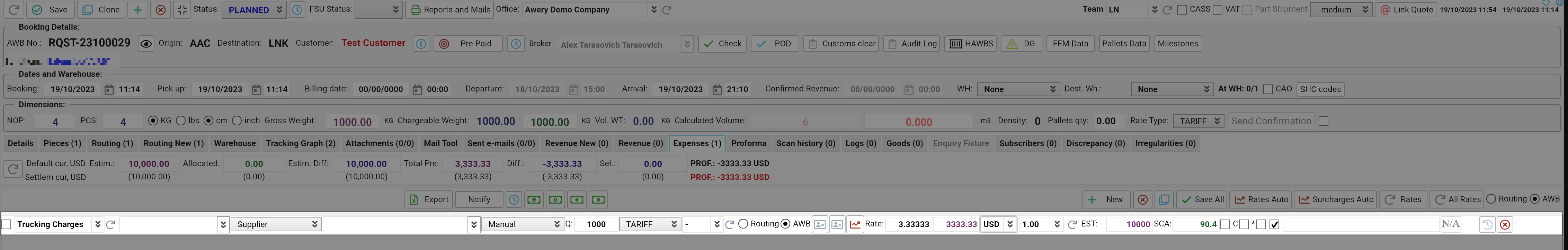 If an Expense entry has already been created with this expense type for AWB, it will be updated based on the new values.