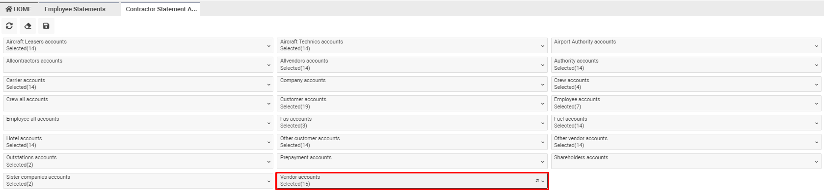 Select the necessary category and the accounts with the help of a tick and click the Save button