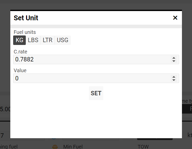 Unit - fuel unit, usg selector is set as default