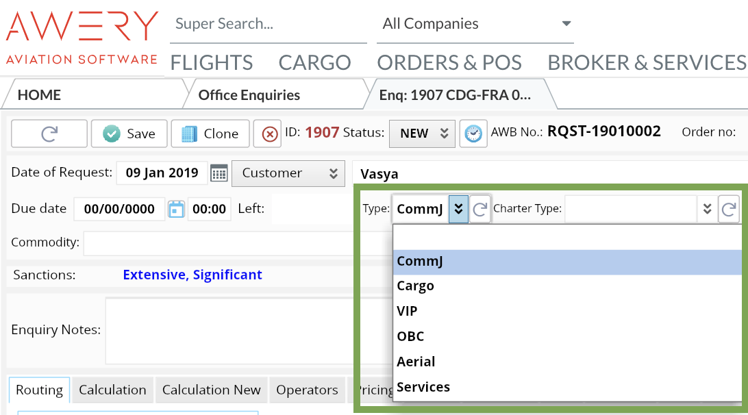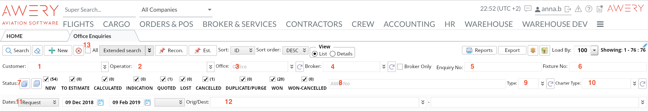 Awery system offers a wide search ability that allows to filter Enquiries by: