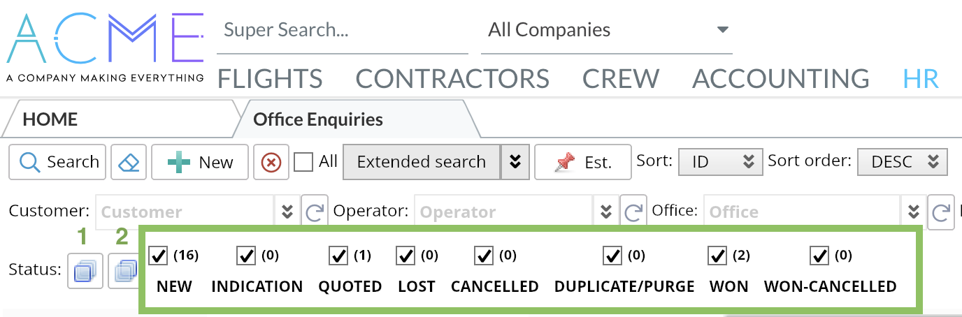 - Ticking the status/ statuses by which you would like to filter the Enquiries