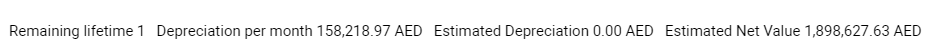 Name, Serial Number, Model, Asset Description, Serial No, Invoice No, Registration No, LPO No, Engine No, Asset Cost, Other Cost, Total Cost, Opening Depr, Opening Net Value, Booked Asset Value, Booked Accumulated Depreciation, Booked Net Value, Lifetime, Notes input fields