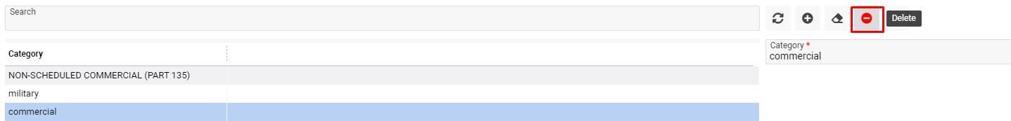 Existing Categories List – Displays available flight categories in a single column ("Category").