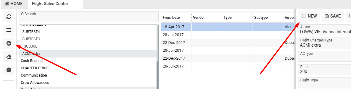 So, in the Flight Sales Center you can see the list of the rates for services for which the service providers get rewarded, based on the selected flight expenses types.