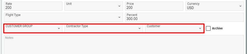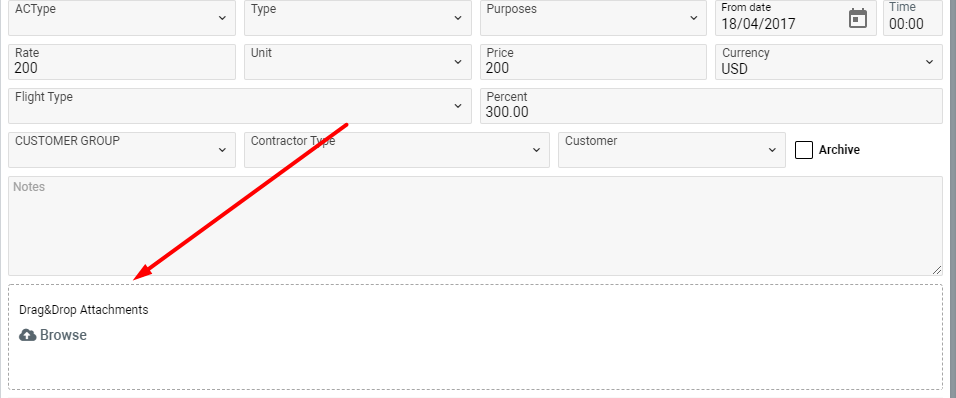 This interface allows the service providers to add rates which then will be pulled into the flight’s services.
