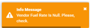 - In case there is no rate for the vendor that was selected in the “Fuel vendor” field, the error message will be displayed at the screen. In this case the service will not be connected to the fuel ticket