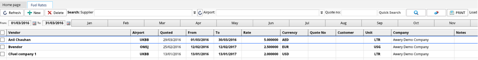 Fuel rates are accessed from “Main menu”->”Rates”->”Fuel Rates”.