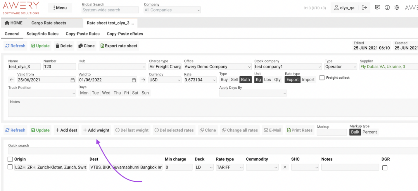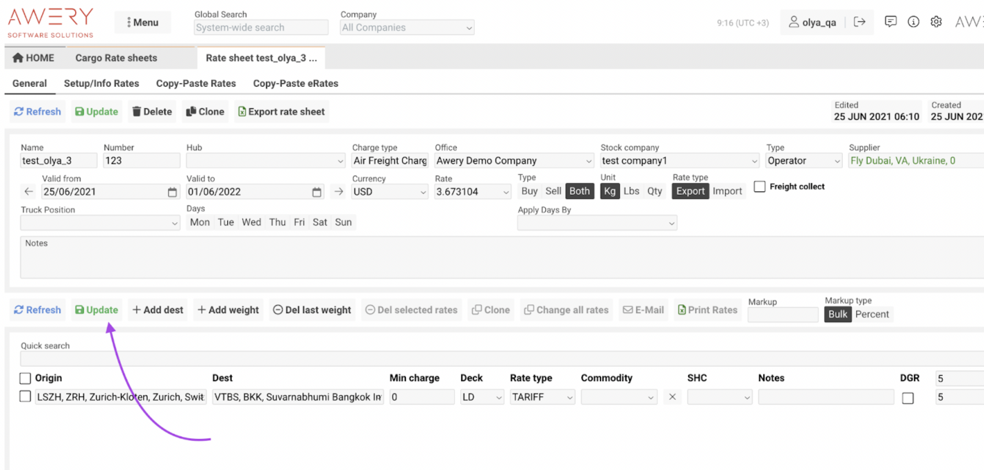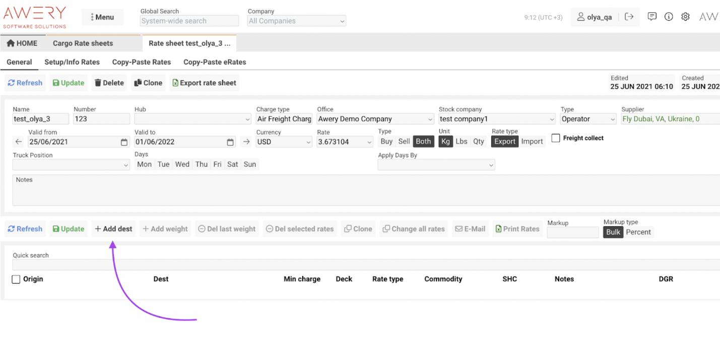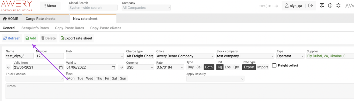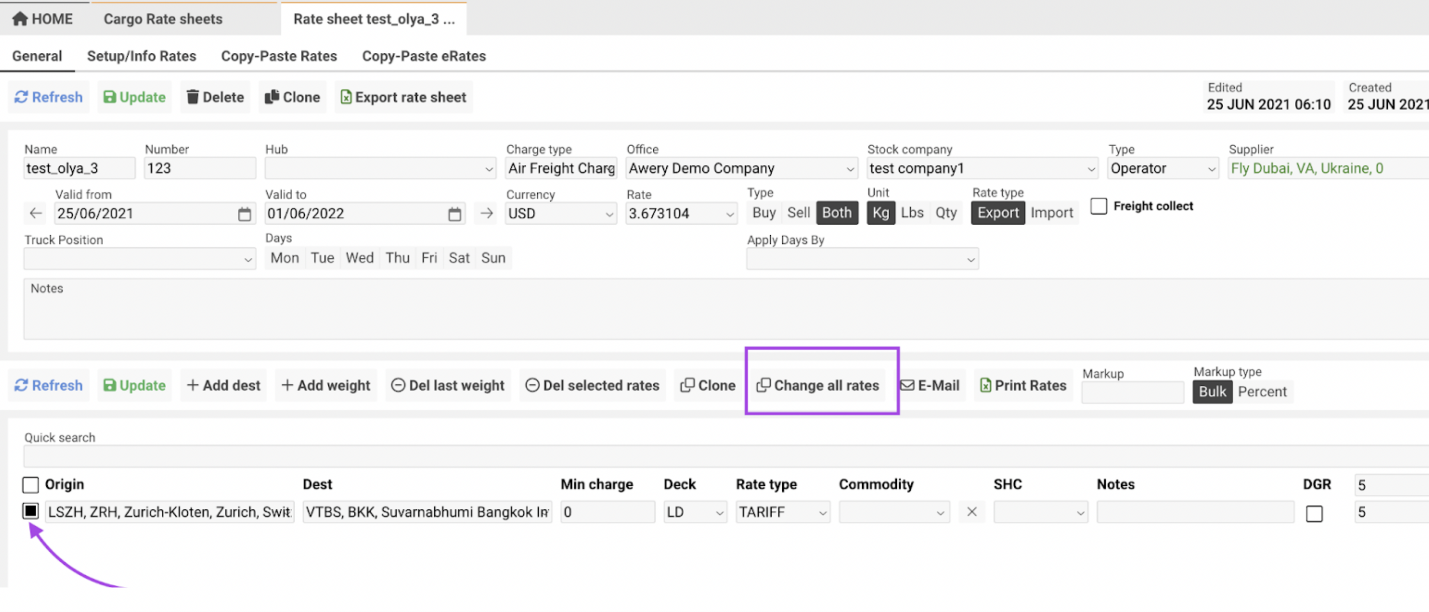 How to Create a New Cargo Rate Sheet