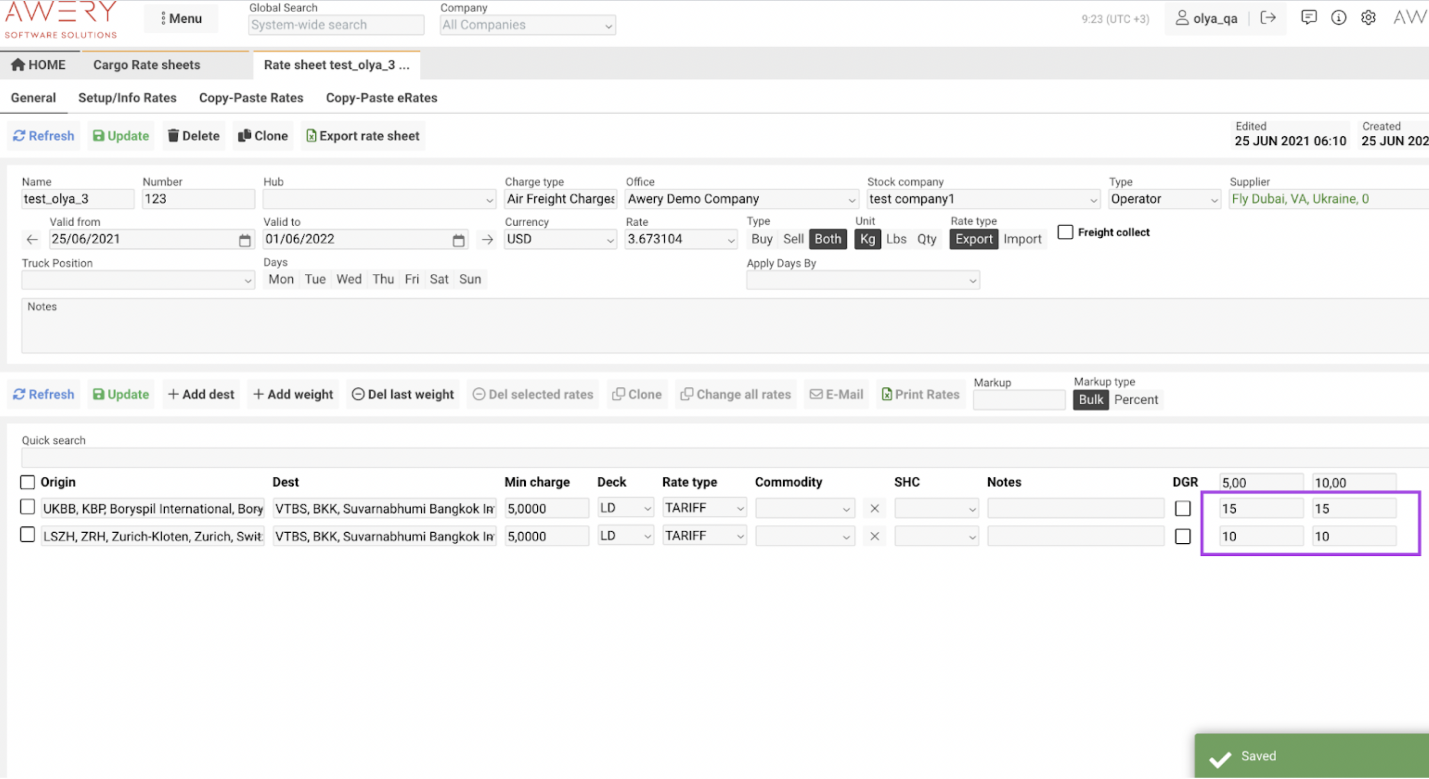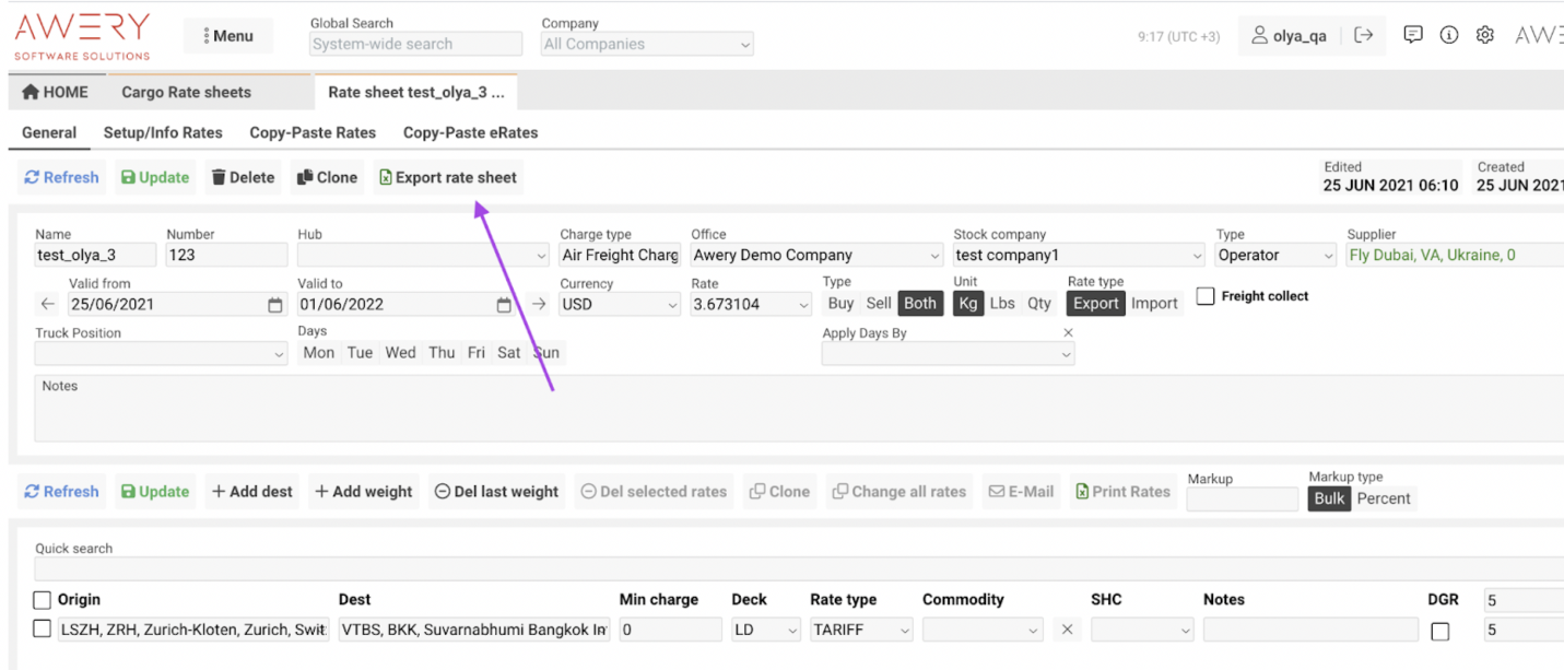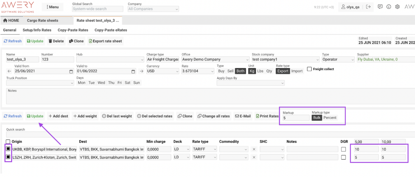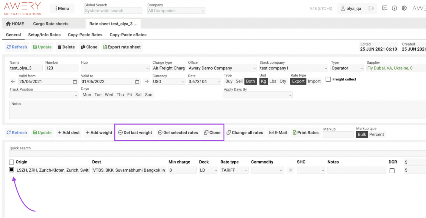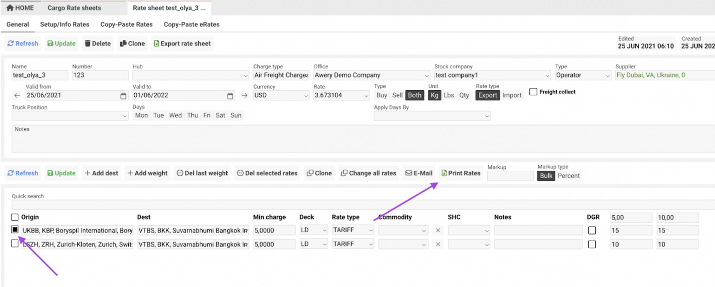 Freight Collect Checkbox: If checked, the rate sheet will be available for AWB numbers with freight collect; otherwise, it won’t.