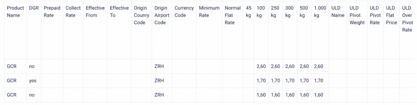 Ensure that your Excel file contains a full list of rates, including Origins and Destinations.