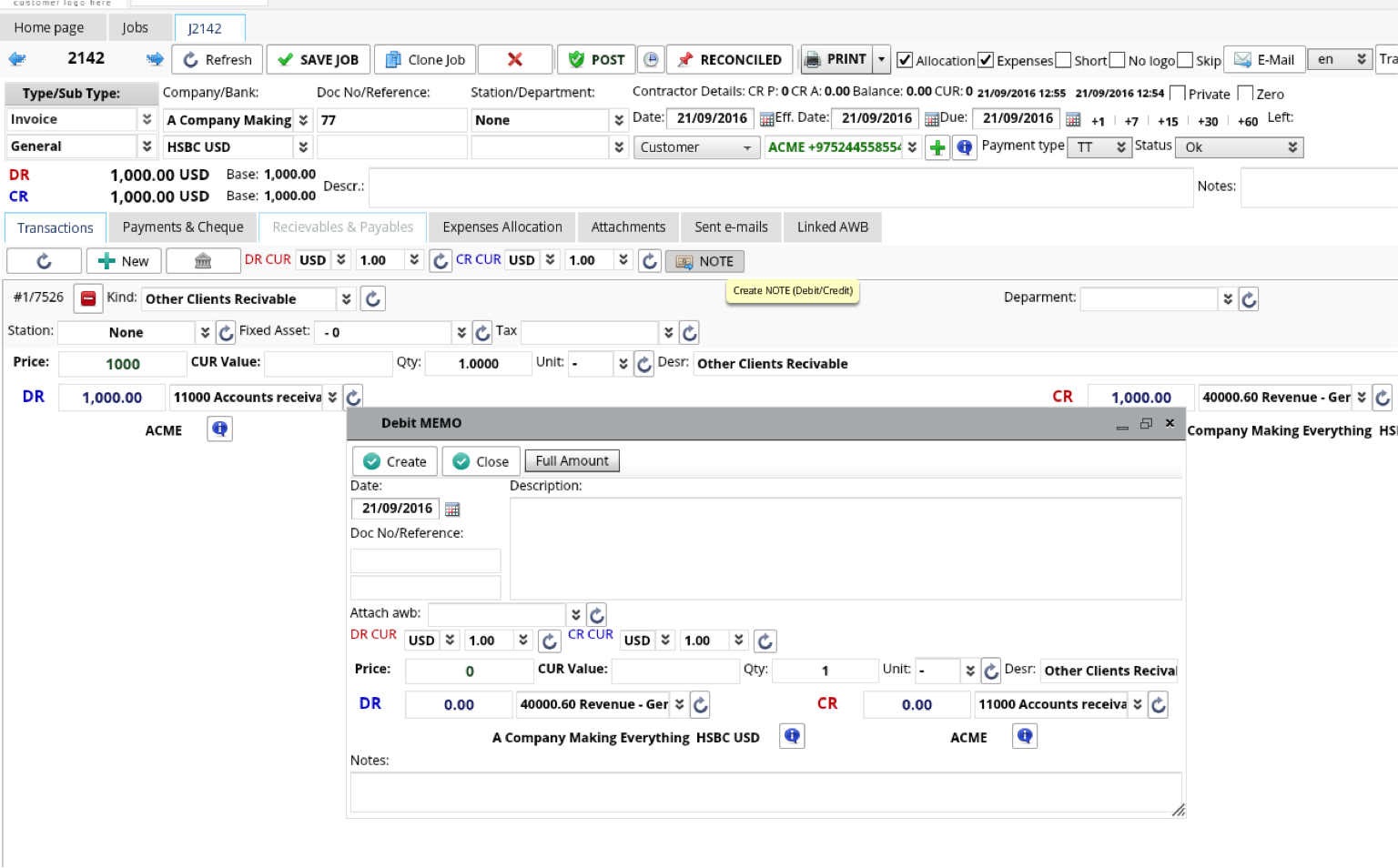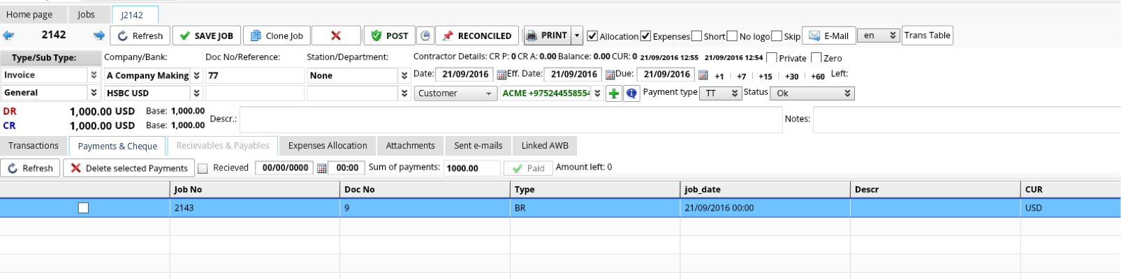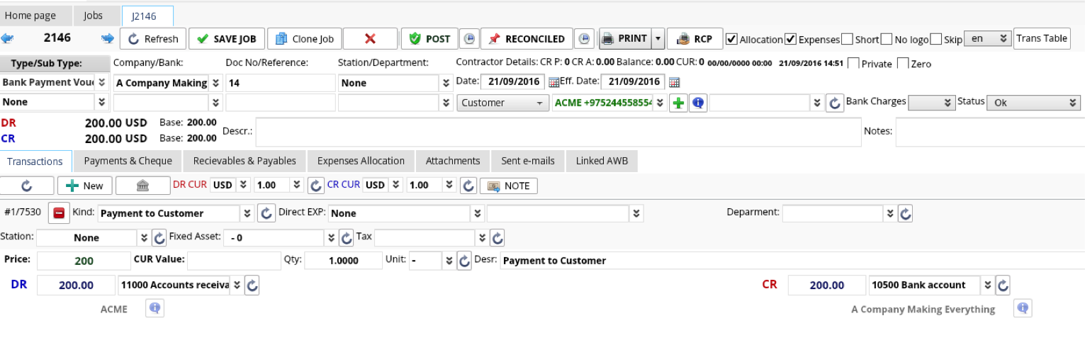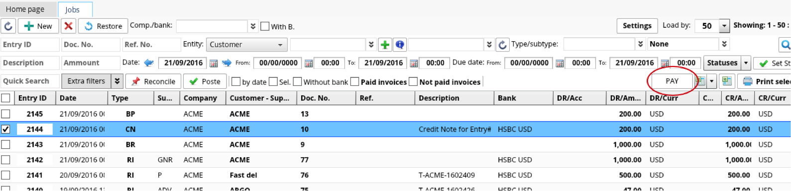 Pay for the Credit note from any Job list with Bank/Cash Payment voucher