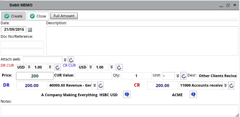 Open Transactions tab and press Note button to create Credit/Debit Note