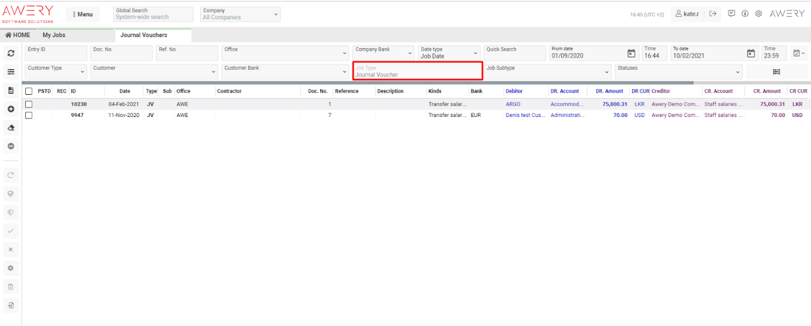 Alternatively, you can access Journal Vouchers directly by following this link: Jobs List