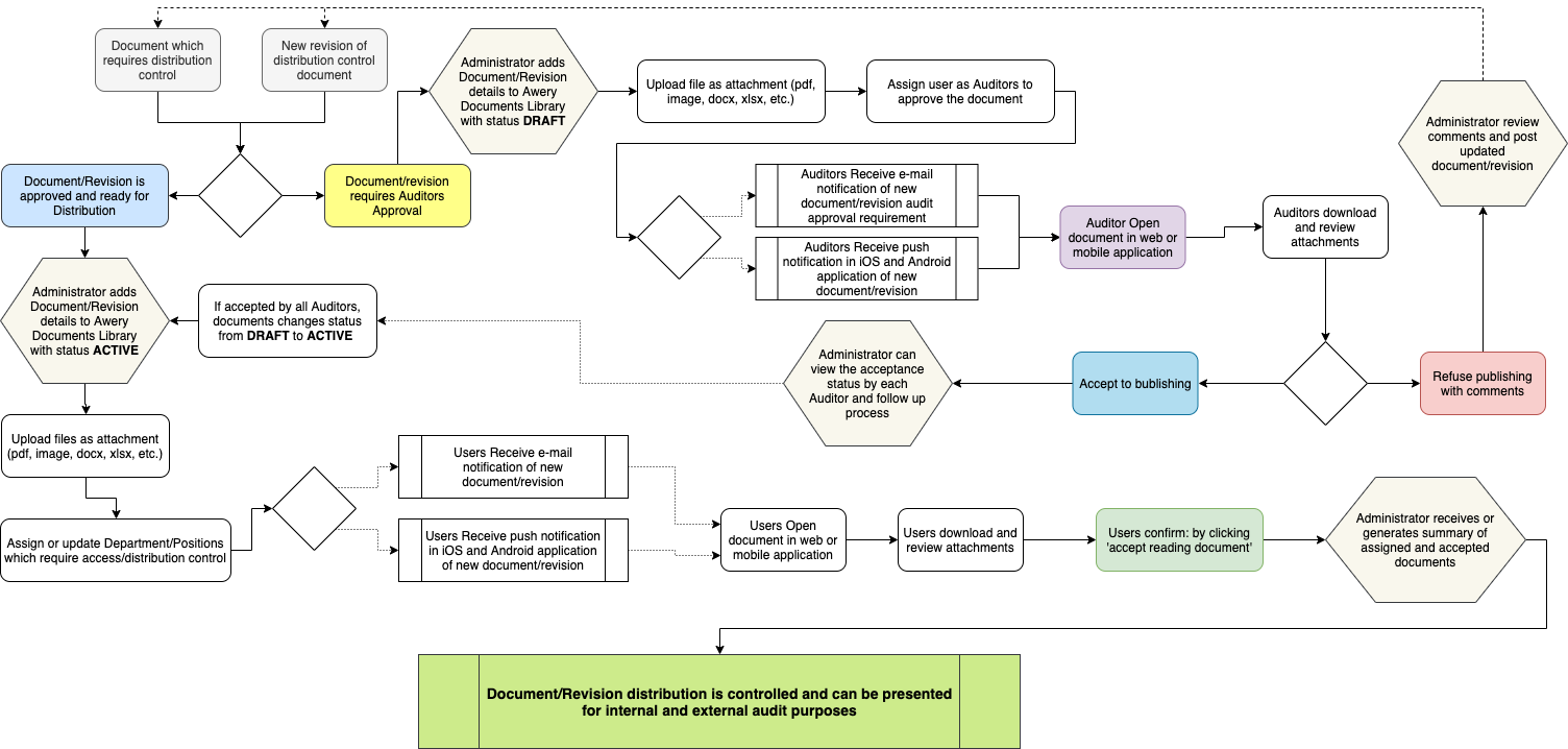 Awery Documents Library is a web application for document distribution and control within the company. Allows automating processes related to the documents circulation, revisions control, managing documents approval, producing status reports, sending reminders and notifications.
