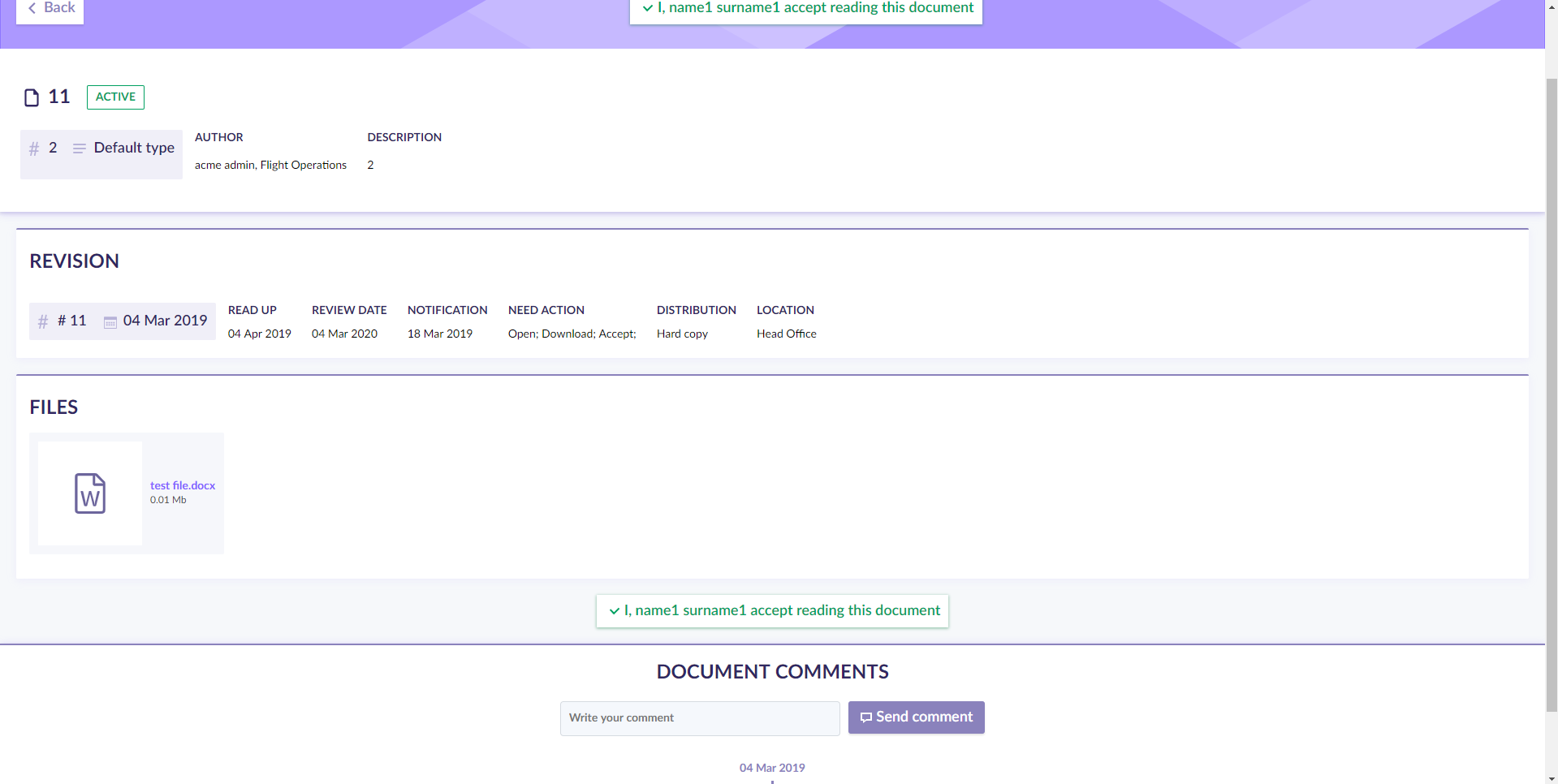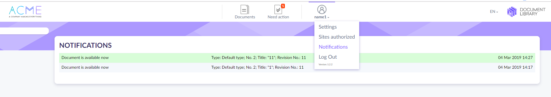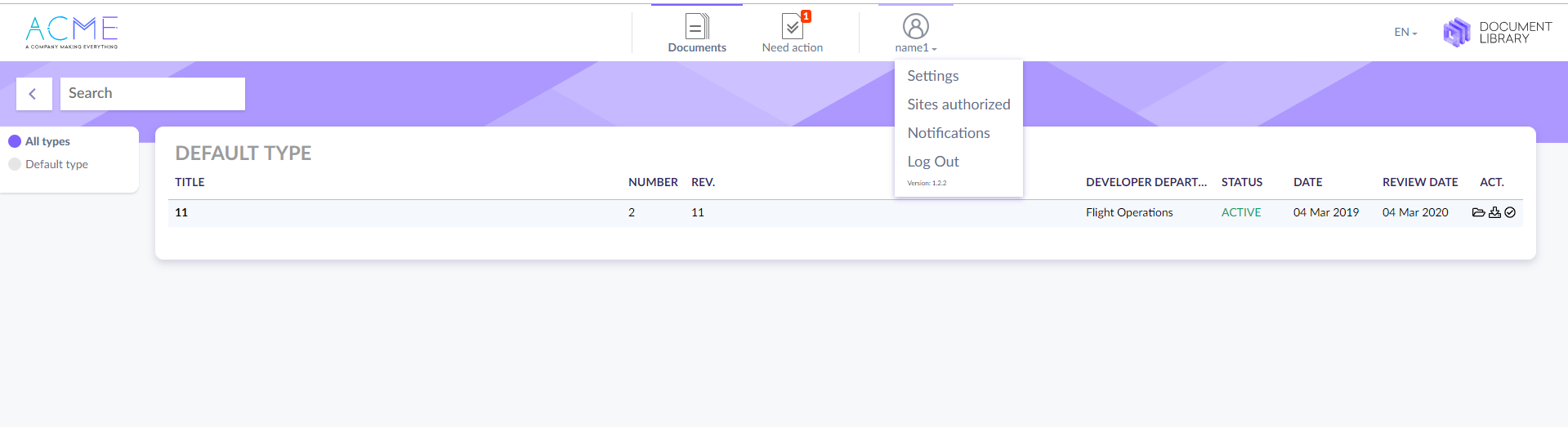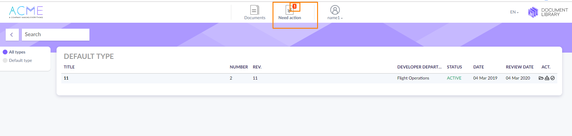 Once you are assigned to a new document, you will get an email notification and see the notification of Needed actions on the top menu of the page.