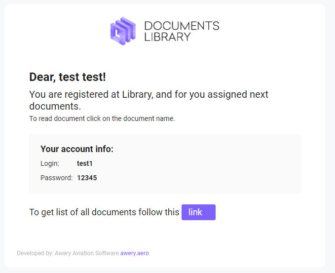 Once a user profile has been created, a user gets an email notification with login details.