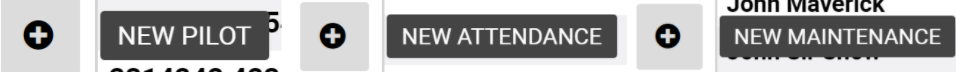 In addition, you can use the ‘New pilot’ button for creating new pilots, use the ‘New attendance’ button for creating new attendance, use the ‘New maintenance’ button for creating new maintenance.