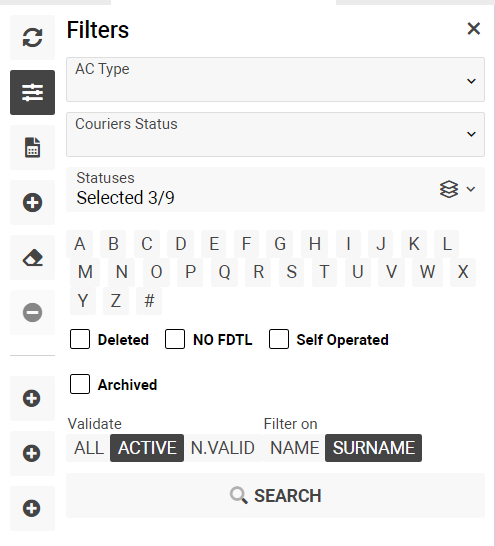Letters - you can filter the list by the first letter in a load master's name or surname.