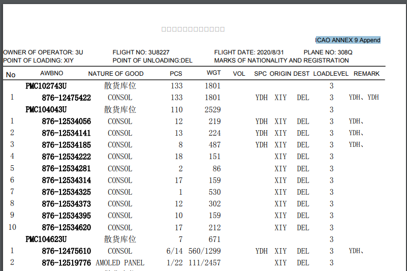 The system accepts Manifests if ICAO ANNEX 9 Append format