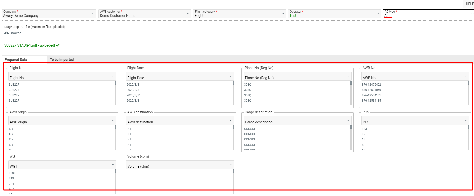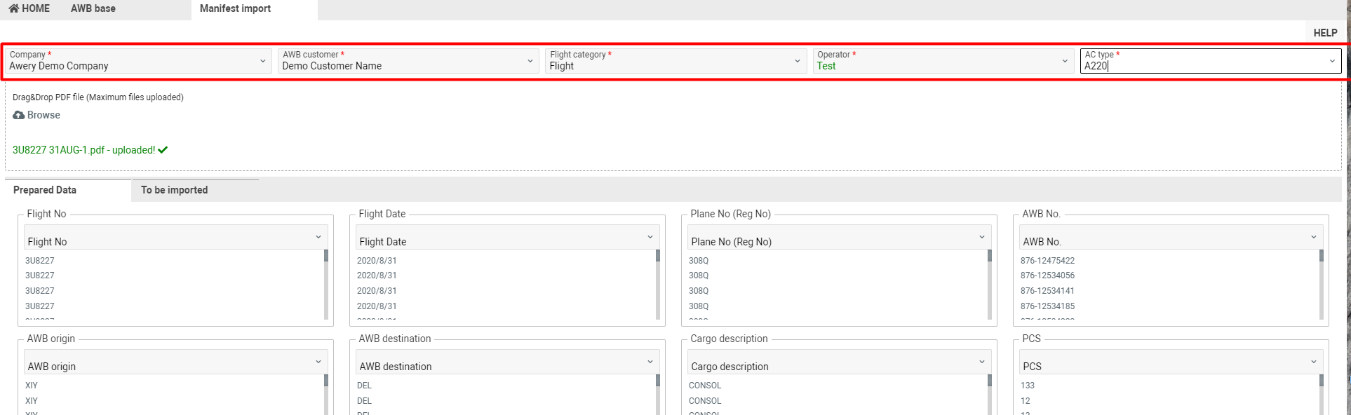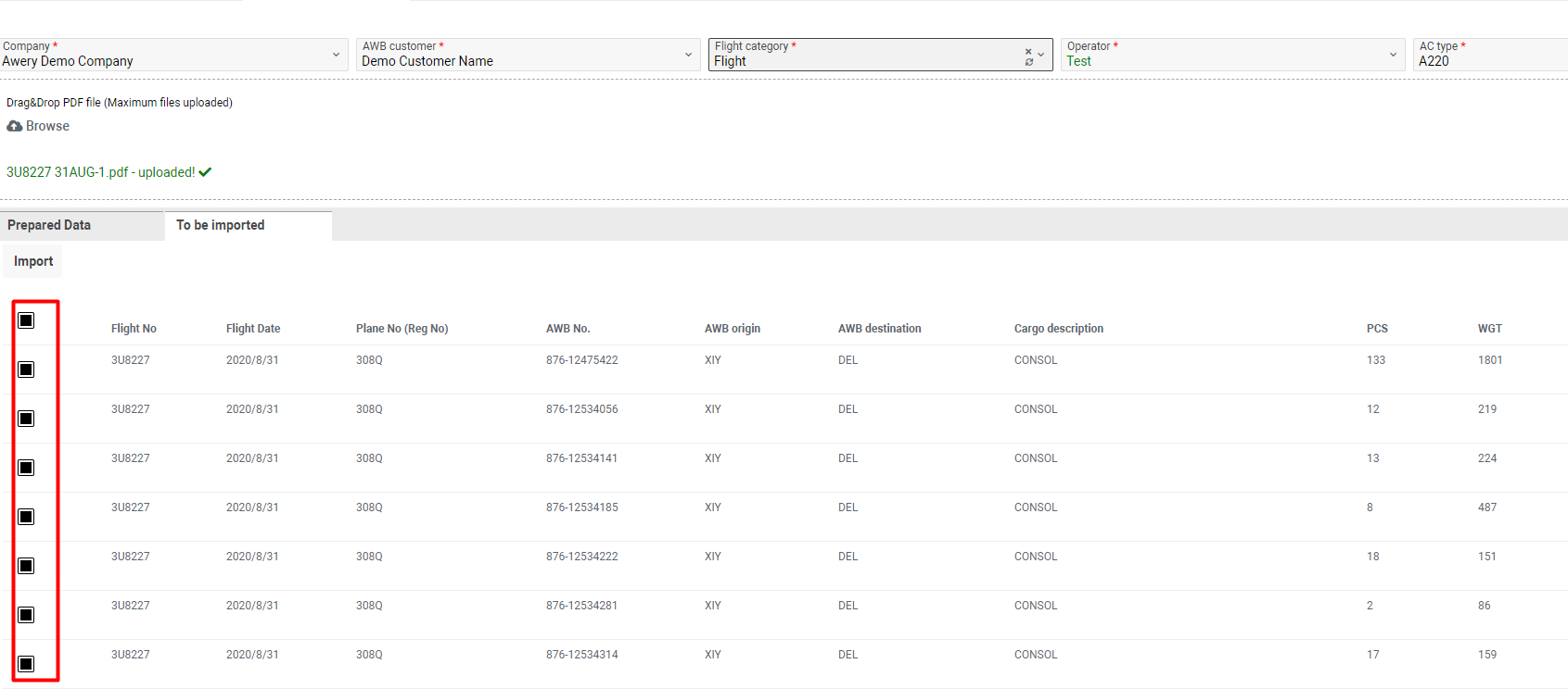 Please, recheck manually highlighted AWBs after import - there could be some mistakes during PDF parsing.