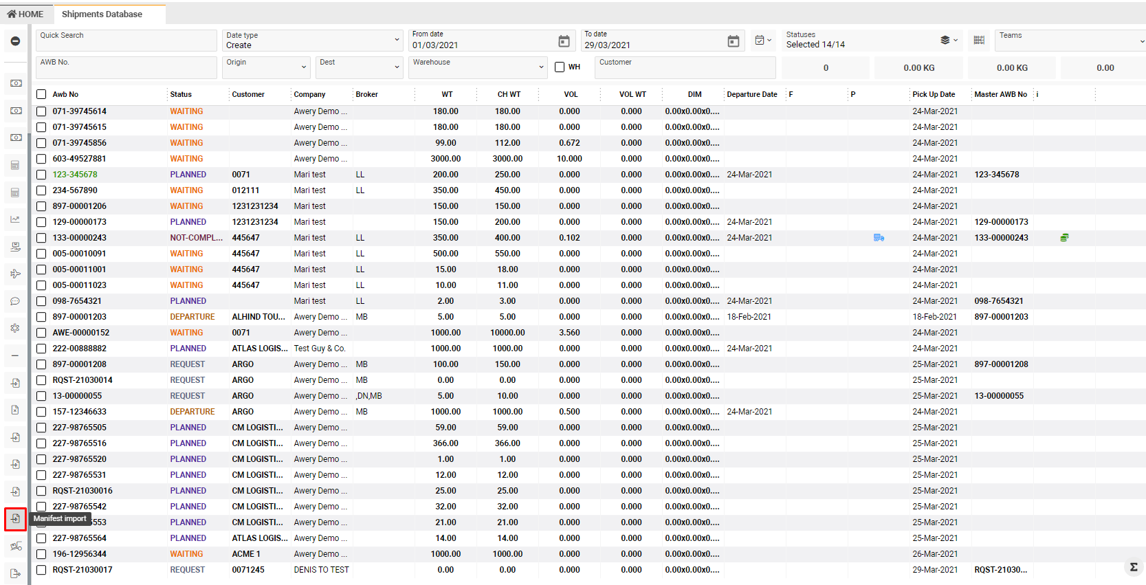 Then, the system will create all AWBs from the manifest and assign them to the flight.