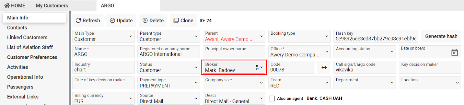 The "My Customers" page lists customers filtered by the Broker setting. You’ll only see customers where the Broker in Customer Settings aligns with the Linked Entity in your User Settings.
