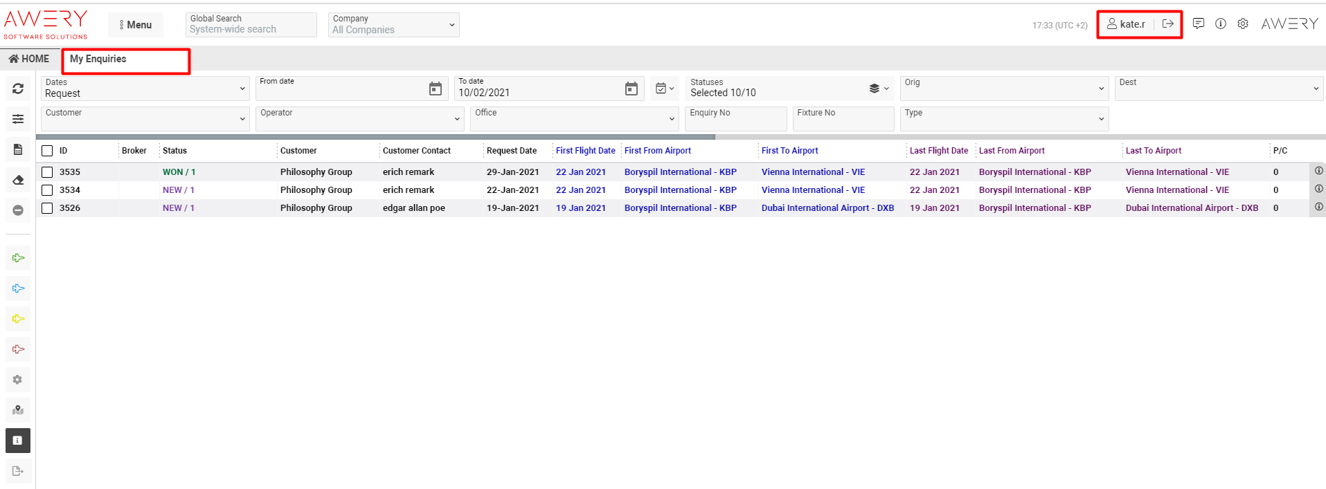 Home→ Flights→ Broker Enquiries→ My Enquiries