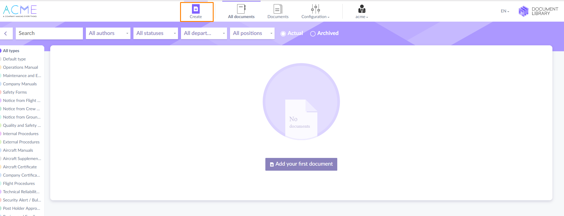 Go to “Documents Library” and click on the button 'Create' at top of the window;