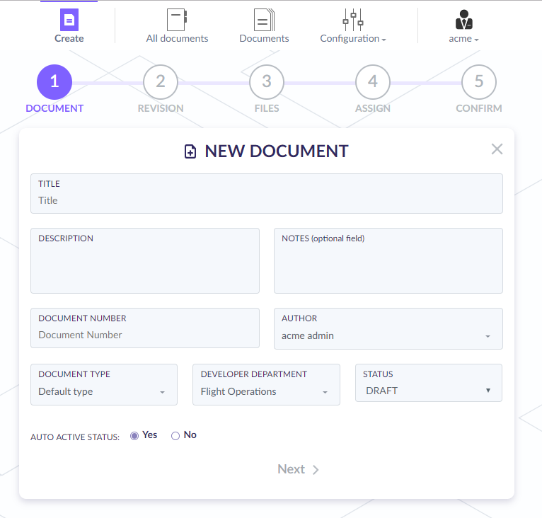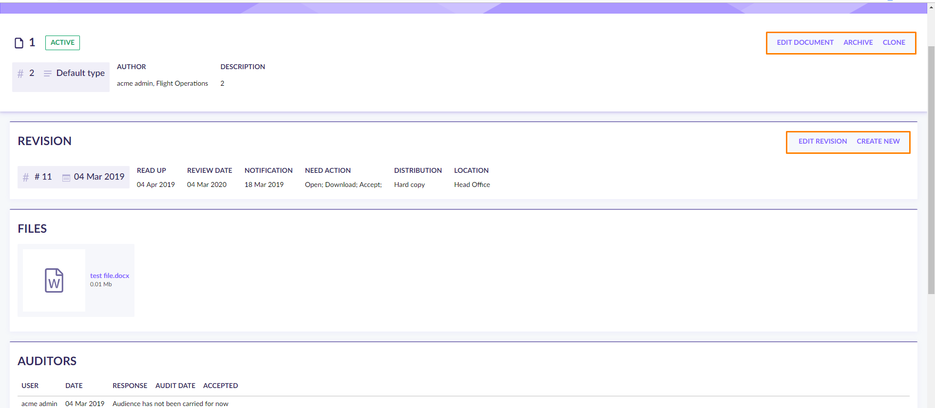Auto active status: If you select “YES” Status of the document automatically changed to “Active” when all auditors approved document;