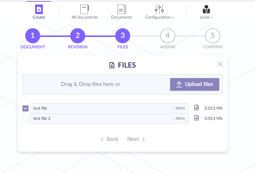 To upload file click “Upload files”, select file from your computer and confirm it;