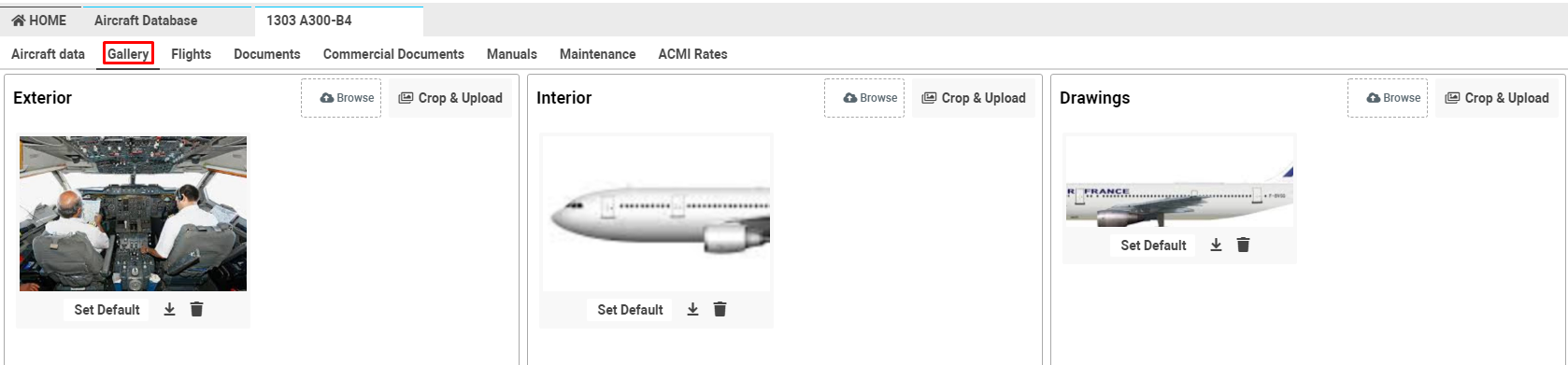 You have an opportunity to upload pictures for a particular aircraft. The data is used when printing some reports, quotes