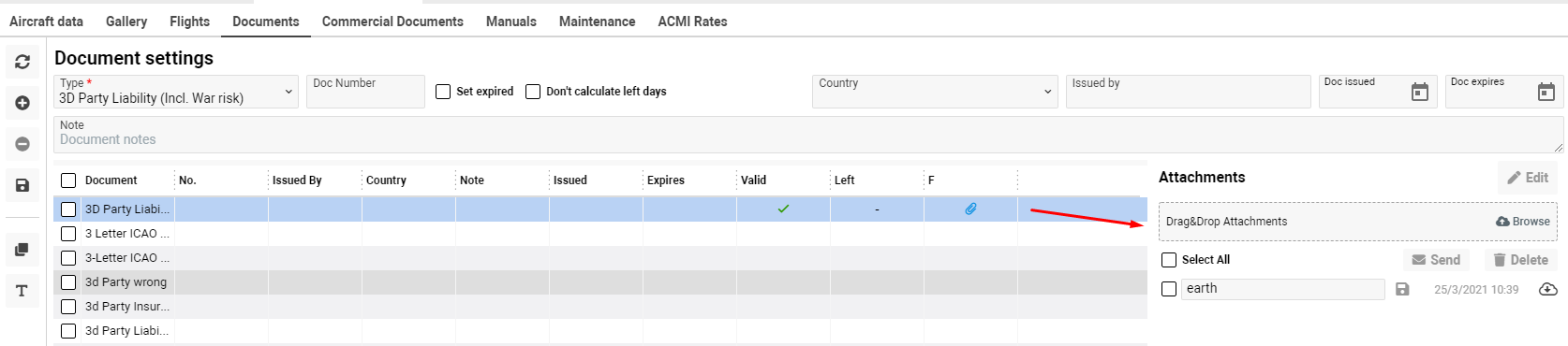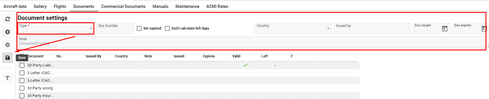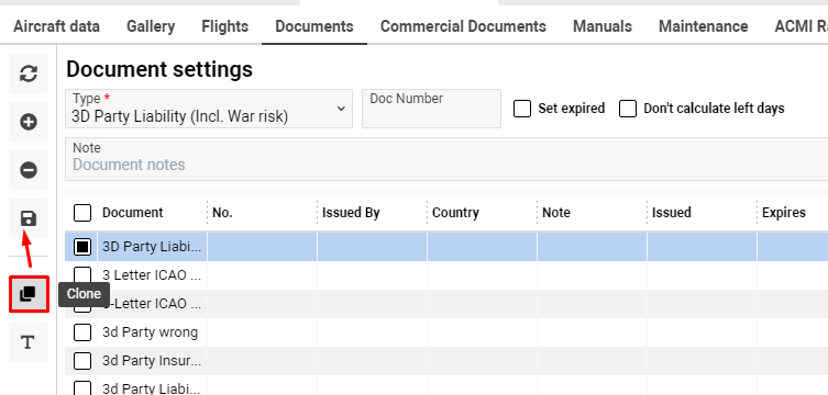 Also, you can switch quickly to Aircraft Documents Types and add missing types