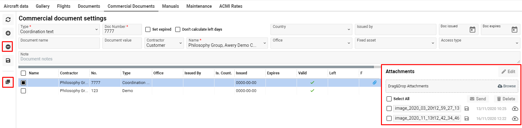 You can add the required commercial documents for different countries and customers, manage their validity period, attach files