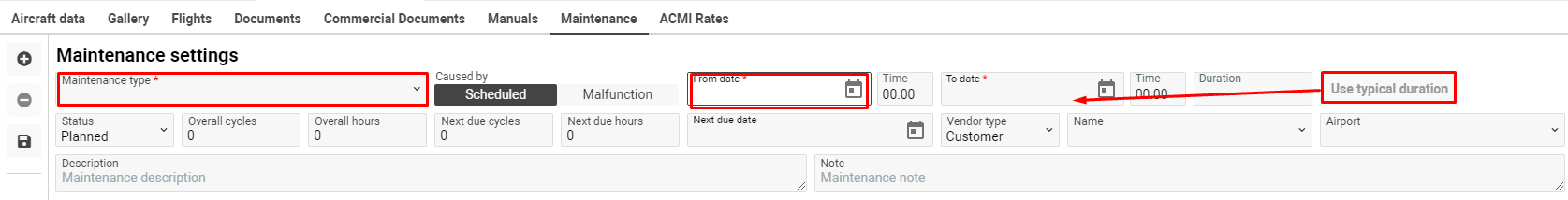 Maintenance type, From-To dates are mandatory data, other fields are optional