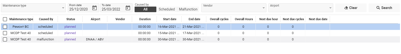Airport - the airport where the maintenance is provided