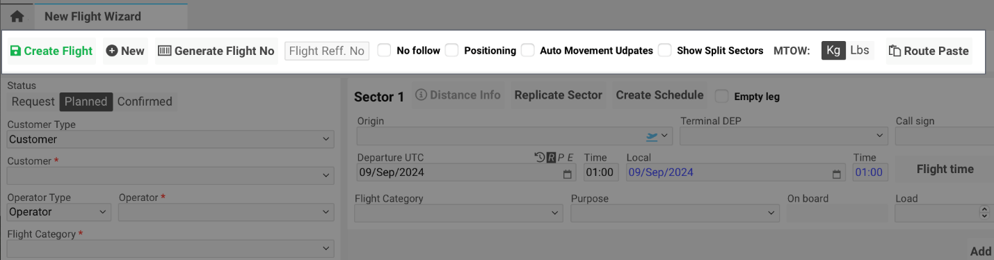 Navigate to the Flights section and under the Flights Section, click the “New Flight Wizard” Button.