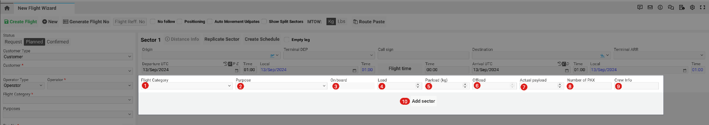 Empty Leg – Marks the sector as an empty leg. (Permission: viewEmptyLegDetails)
