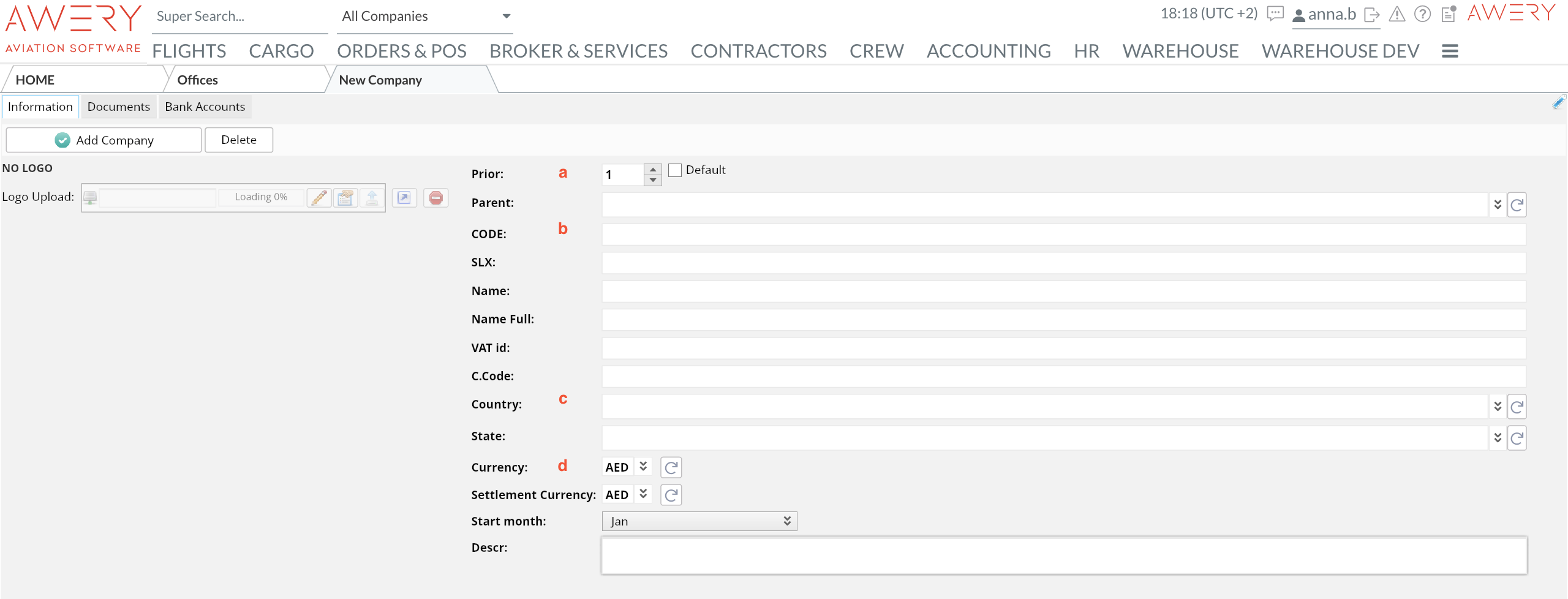 To add a new Office press "New"→ Enter the required information→ Press "Add Company"