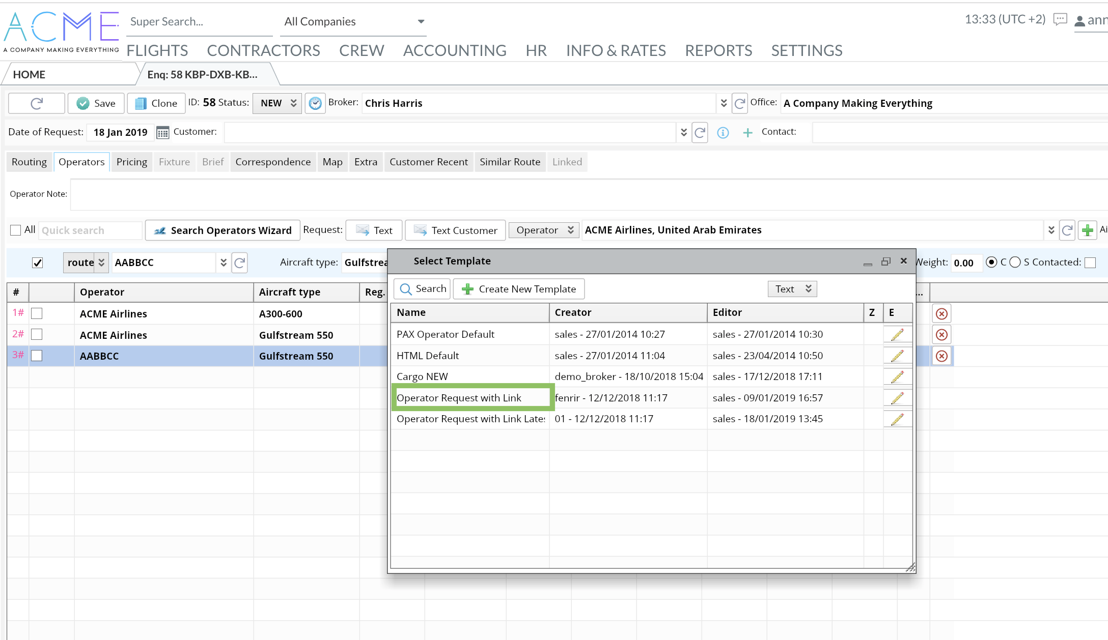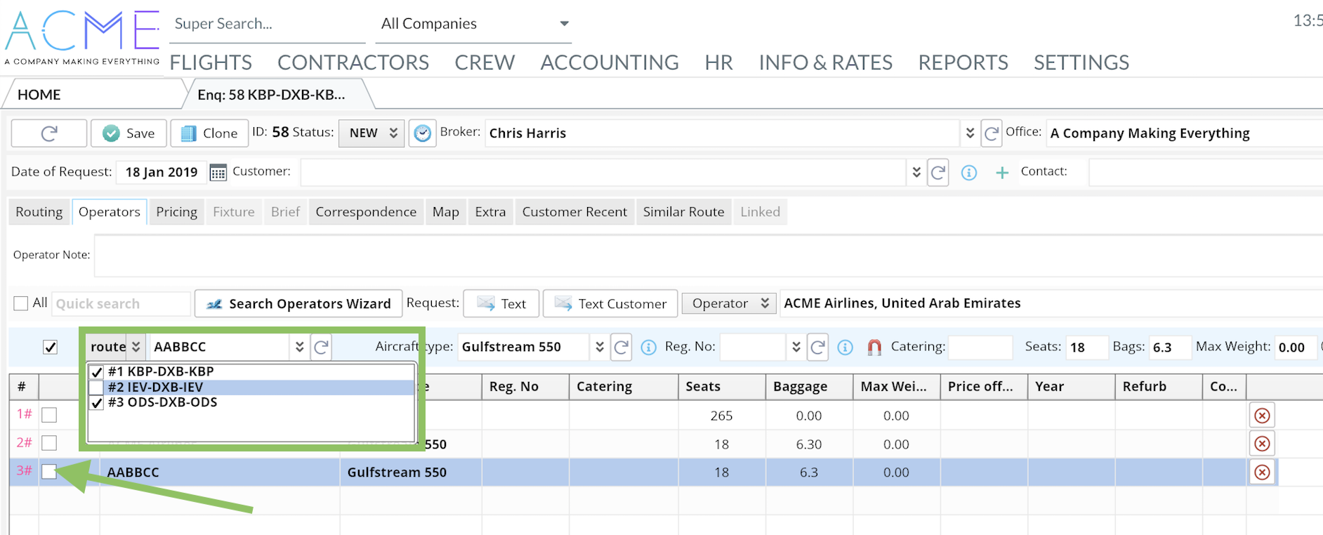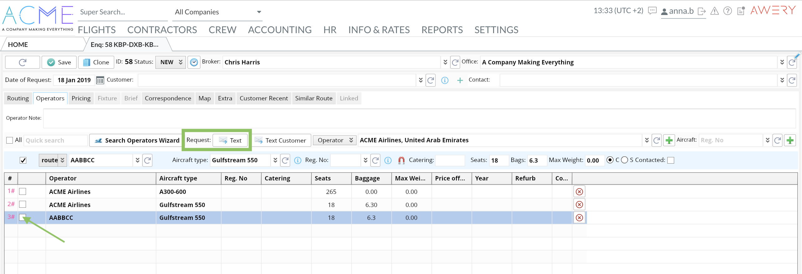 Home→ Flights→ Enquiry→ Office Enquiries→ Open a required Enquiry→ Operators