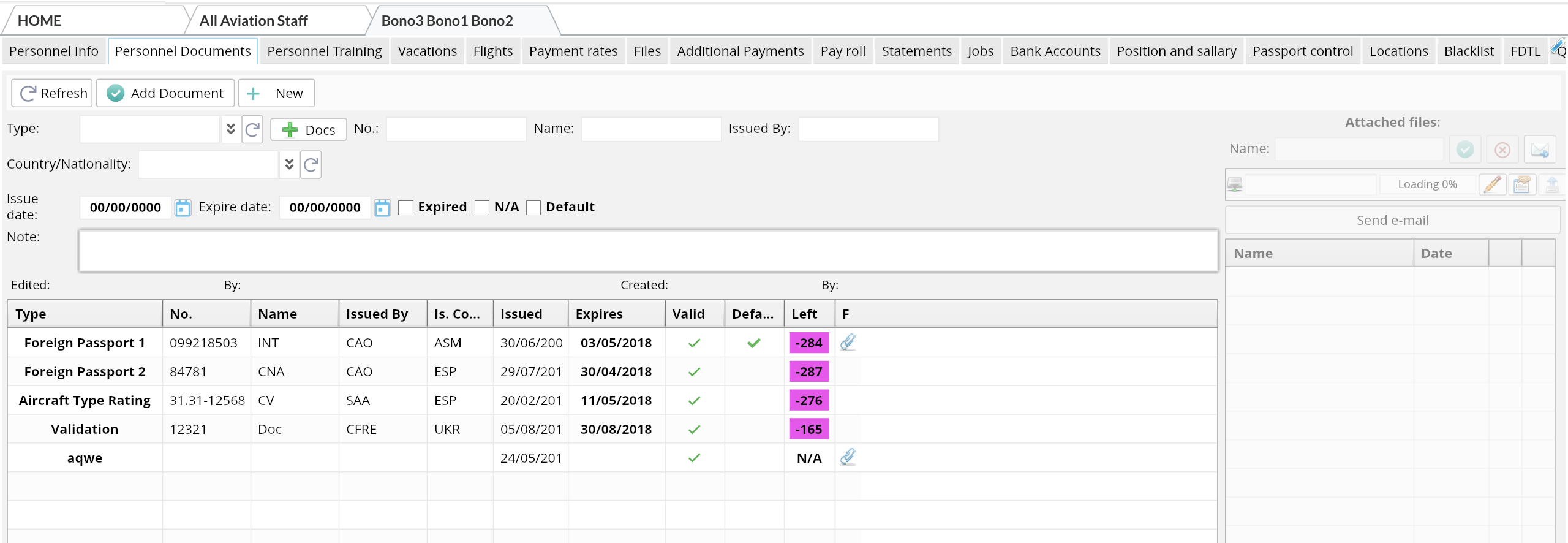 Home> Crew> Crew Management> All Aviation Staff> Select person> Personnel documents