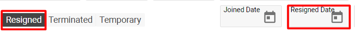 The Joined Date, Resigned Date, calendar