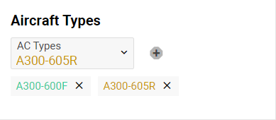 Select the necessary AC type in the selector and click the + button to add. You have an opportunity to add one or more aircraft