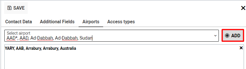 Pay attention that you have an opportunity to add one or more airports, clicking the Add button